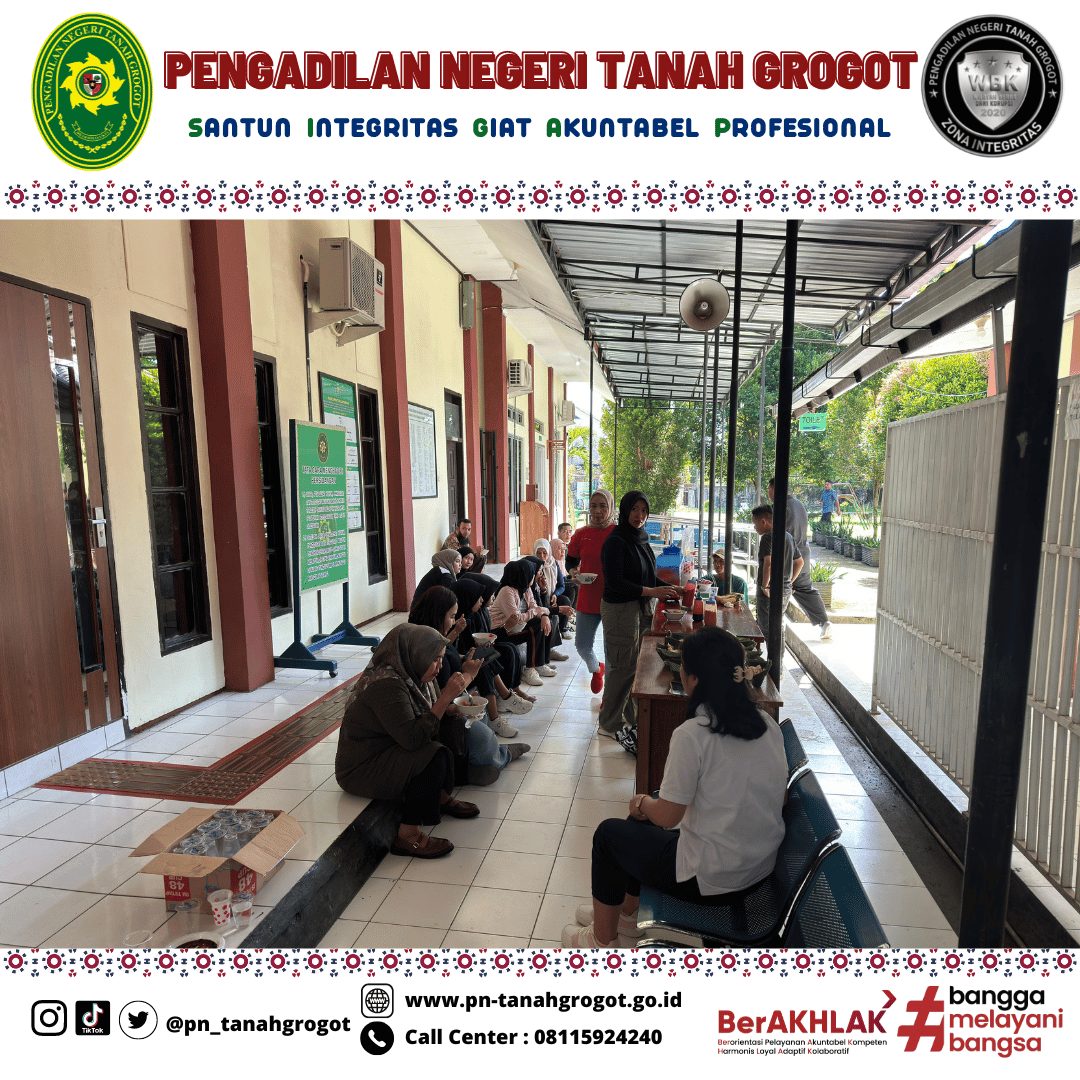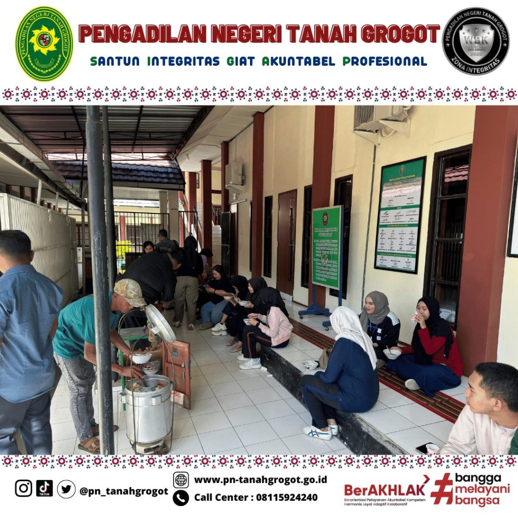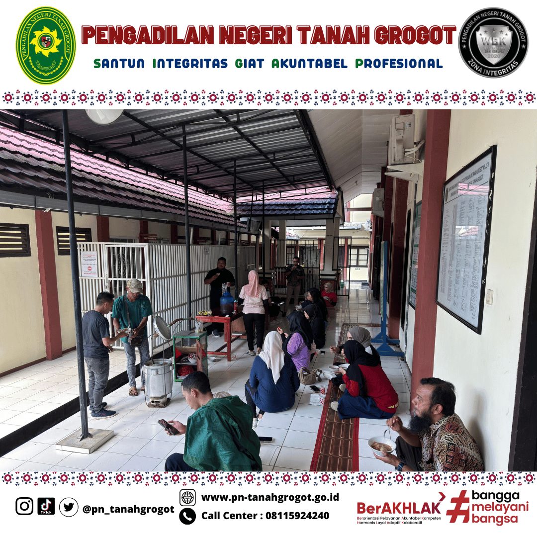Sebagai bentuk kebersamaan Keluarga Besar Pengadilan Negeri Tanah Grogot mengadakan acara makan bersama. Acara makan bersama ini dilakukan di samping Ruang Sidang Utama Pengadilan Negeri Tanah Grogot. Kegiatan makan bersama ini bertujuan untuk merekatkan kebersamaan pegawai dan juga sebagai relaksasi setelah melaksanakan kerja keras.